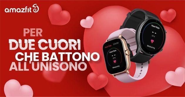 Per la festa degli innamorati di quest’anno, Amazfit ha pensato di proporre per San Velentino due speciali bundle in offerta limitata che permettono di acquistare due wearable del brand a prezzo speciale, acquistabili sul sito e-commerce del brand (it.amazfit.com/pages/valentines-sale) e su Amazon.it.