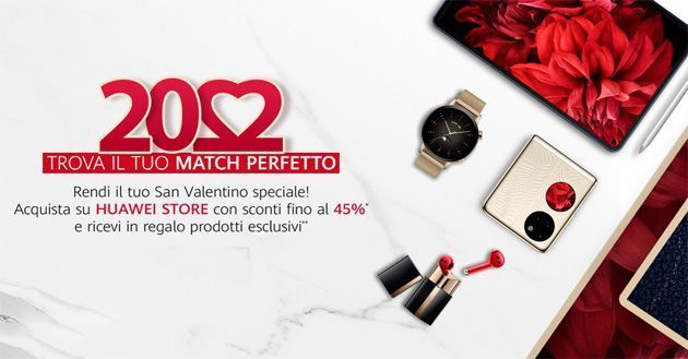 Huawei celebra la festa degli innamorati di quest’anno con la campagna “Trova il tuo match perfetto”, che prevede promozioni sui prodotti dell’ecosistema del brand cinese, con sconti fino al 45% su Huawei Store su smartphone, wearable, device audio, monitor, pc e tablet.