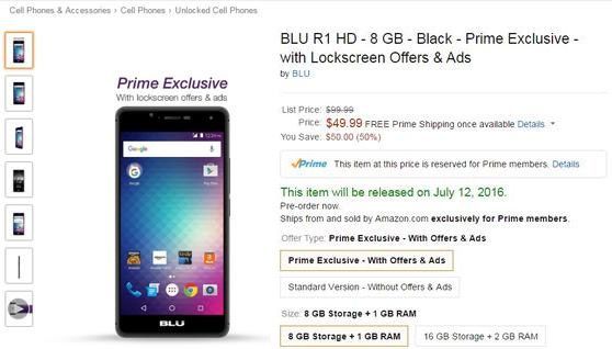 Al momento del lancio del servizio, negli Stati Uniti gli abbonati a Prime possono acquistare due smartphone con uno sconto di 50 dollari sul prezzo i listino, a condizione però di accettare la visualizzazione di pubblicità sulla schermata di blocco per tutto il tempo che useranno lo smartphone (quindi a vita).