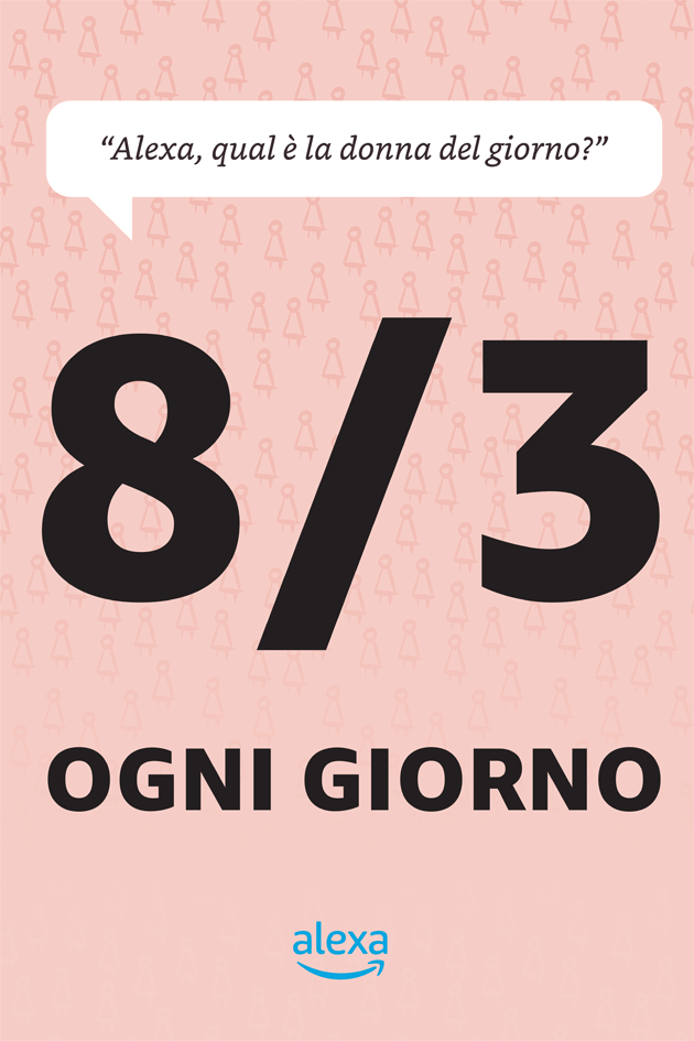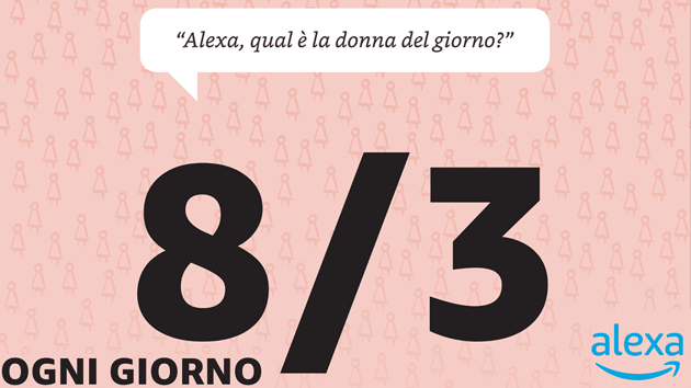 Dall’8 marzo 2022 in poi, ogni giorno, sarà possibile chiedere ad Alexa "qual è la donna del giorno?" per ascoltare l’assistente vocale Alexa raccontare le storie delle donne che in Italia si sono distinte nel proprio campo, tra cultura, scienza, tecnologia, spettacolo e sport, rivestendo un ruolo importante nella storia e nella società, come Margherita Hack e Bebe Vio.