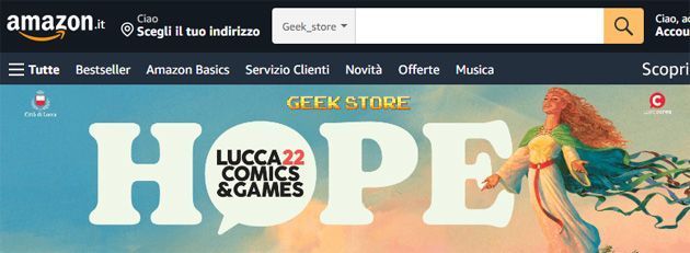 All’interno del "Geek Store Amazon", nella sezione ‘Lucca Store 2022’ è possibile accedere a offerte esclusive e un’ampia selezione di giochi, fumetti, videogiochi, collezionabili e molto altro, inclusi la possibilità di acquistare le novità editoriali, gadget ricercati e, da quest’anno, anche i DVD, tra cui l’antologia di Batman, un cofanetto che raccoglie i primi quattro film della saga, e la stagione finale del manga L’attacco Dei Giganti. Tra le novità anche il fumetto Blue period (Vol. 8) di Tsubasa Yamaguchi e il primo fan book ufficiale del lavoro del sensei Koyoharu Gotouge Demon slayer. Kimetsu no yaiba.