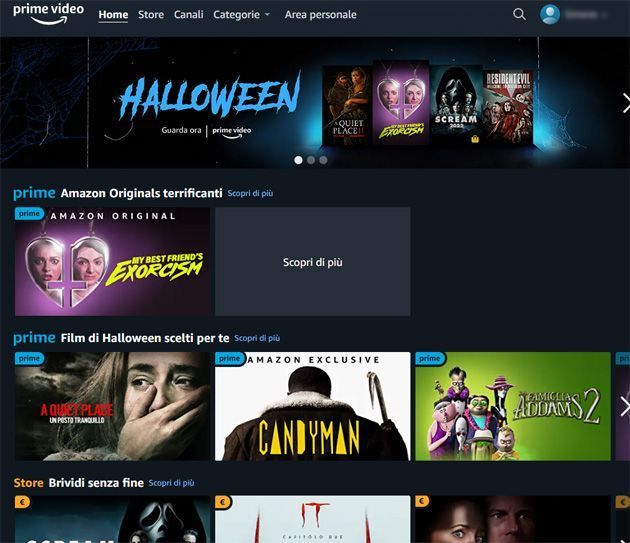 Inoltre, segnaliamo che all’interno di Prime Video è possibile trovare una sezione che raccoglie titoli a tema: direttamente dalla Home del servizio di streaming basta premere il banner ‘Halloween’ per entrarci. Sono raccolti sia titoli la cui visione è include nell’abbonamento ad Amazon Prime, sia titoli disponibili a noleggio o acquisto nello Store.