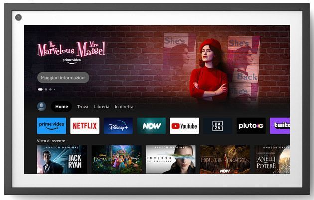 L’esperienza Fire TV su Echo Show 15 offre un menu principale che include le categorie: ‘Trova’, per cercare applicazioni e video, oppure sfogliare diverse categorie di contenuti; ‘Libreria’, per accedere a ‘La mia Lista Video’, agli acquisti e ai noleggi; e ‘In diretta’, per visualizzare i contenuti TV in diretta da applicazioni e abbonamenti supportati. Con Fire TV è inoltre possibile creare diversi profili per ogni membro della famiglia e personalizzare le app e i canali dal menu principale, oltre a impostazioni come la lingua e l’accessibilità.