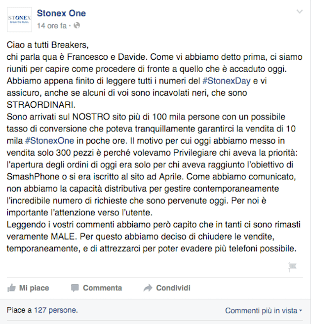 Con tutto questo non stiamo condannando Stonex dato che un errore, soprattutto per chi si butta a capofitto in un progetto nuovo, è una cosa normale .