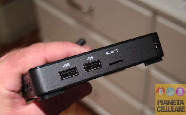A sinistra due USB 2.0 per il collegamento di Mouse, tastiere oppure dispositivi di archiviazione ed una Micro SD per la lettura di file da schede di memoria.