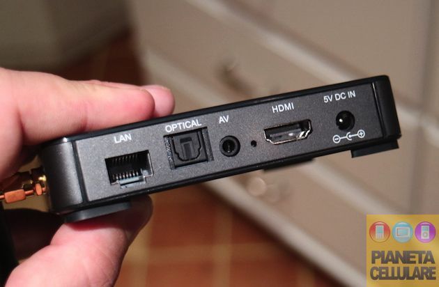 Sul retro troviamo una ethernet Gigabit, una porta audio ottica, una porta audio e video digitale, il tasto reset, l’ingresso HDMI e la porta di alimentazione.