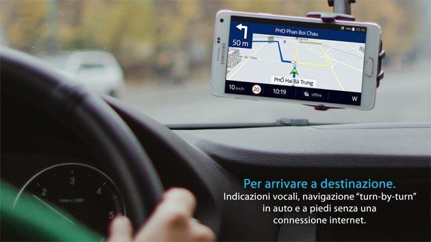 La caratteristica principale di HERE Maps è sempre stata il suo supporto per la navigazione offline. Attualmente il database di mappe da poter scaricare offline e consultare quando il telefono non è connesso ad internet copre 118 paesi in tutto il mondo, e la navigazione vocale turn-by-turn è disponibile in più lingue (sempre anche offline).