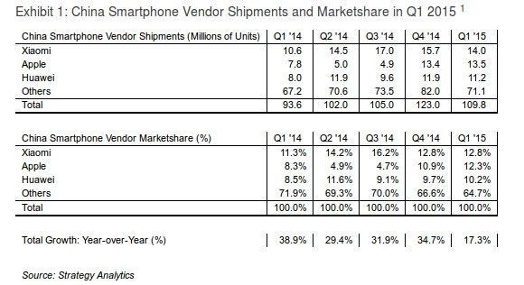Secondo Neil Mawston, direttore esecutivo di Strategy Analytics, "Xiaomi ha mantenuto la posizione numero nel mercato degli smartphone in Cina per tre trimestri di fila grazie alla solida domanda per i suoi modelli Redmi più famosi. Tuttavia, la rapida crescita di Xiaomi sta ora volgendo al termine, ed ha registrato una crescita sequenziale negativa in Cina negli ultimi due trimestri."