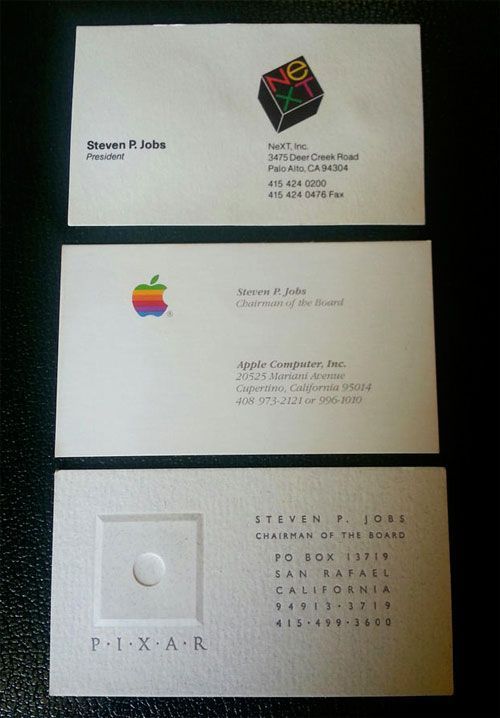 Il liceo a San Rafael, in California, sta vendendo tre biglietti da visita di Steve Jobs, uno di quanto è stato presidente di NeXT, un secondo di quando è stato presidente di Apple e il terzo di quando ha lavorato alla Pixar. I biglietti risalgono agli anni tra il 1984 ed il 1990.