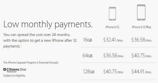 Guardando infatti la versione americana, troviamo iPhone 6S disponbile a 649 dollari per 16 GB, 749 dollari per 64 GB e 849 dollari per la versione da 128 GB.