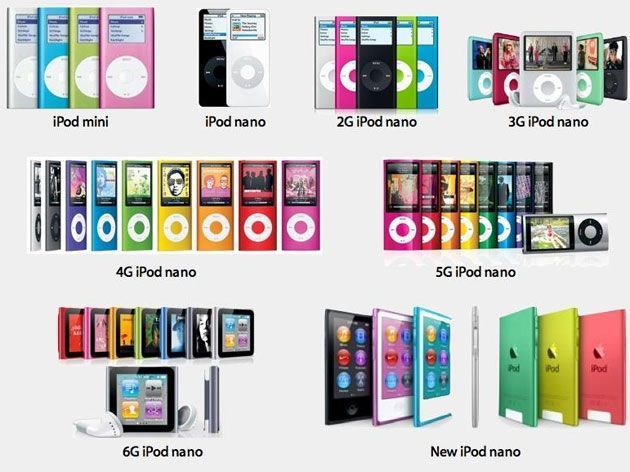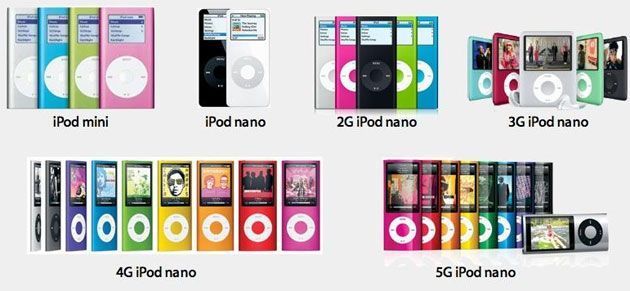 – Apple iPod Nano: 1a (7 settembre 2005), 2a (12 settembre 2006), 3a (5 settembre 2007), 4a (9 settembre 2008), 5a (9 settembre 2009), 6a (9 settembre 2010), 7a (12 settembre 2012).
