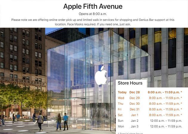 Apple ha preso la decisione di chiudere le porte al libero accesso di pubblico dei suoi punti vendita a New York City a causa dell’importante aumento dei casi di Covid-19 nella città statunitense – oltre 22 mila solo nella città di New York nel giorno del 27 dicembre 2021. A darne notizia è il sito web di Apple, dove nelle singole pagine degli Apple Store fisici sono riportate note specifiche per lo store, con la maggior parte che riportano la nota: "Si prega di notare che stiamo offrendo il ritiro degli ordini online e servizi limitati di accesso per lo shopping e il supporto Genius Bar in questa posizione. Mascherine obbligatorie. Se ne hai bisogno, chiedi pure.". In altre parole, la chiusura dei negozi non è completa come già avvenuto lo scorso anno nella prima ondata di casi di covid ma non sembra sia possibile entrare negli store Apple della Grande Mela liberamente come prima, semplicemente per guardare i prodotti esposti o fare shopping tradizionale: i negozi restano solo aperti per dare la possibilità a coloro che ordinano online di ritirare i loro prodotti presso i negozi e per continuare ad offrire servizi come il supporto Genius Bar.