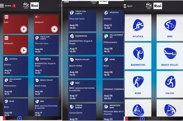L’applicazione Rai Rio2016, disponibile per iOS, Android e Windows Phone, è senza dubbio la migliore, complice la disponibilità direi totale dei video, anche in diretta, delle Olimpiadi.