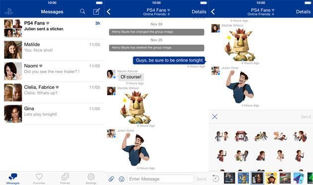Installando PlayStation Messages sul dispositivo mobile è possibile controllare il proprio elenco degli amici per vedere istantaneamente chi è online e a che cosa sta giocando, qindi si puo’ inviare SMS o messaggi vocali oppure foto e sticker agli amici o a un gruppo fino a 100 giocatori. L’app consente anche di accedere rapidamente ai propri gruppi di messaggistica preferiti dall’elenco dei preferiti.