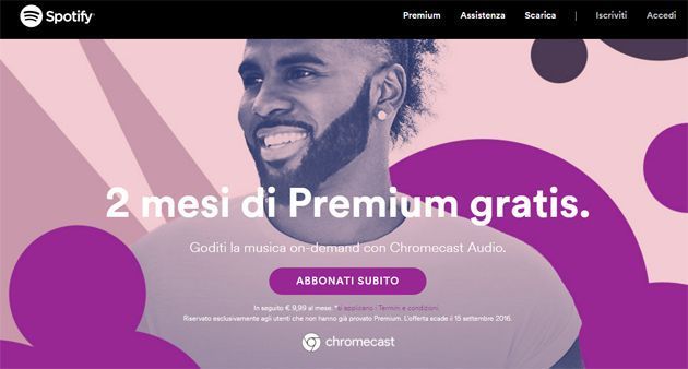 Per accedere all’offerta basta collegarsi al sito https://www.spotify.com/it/chromecast/