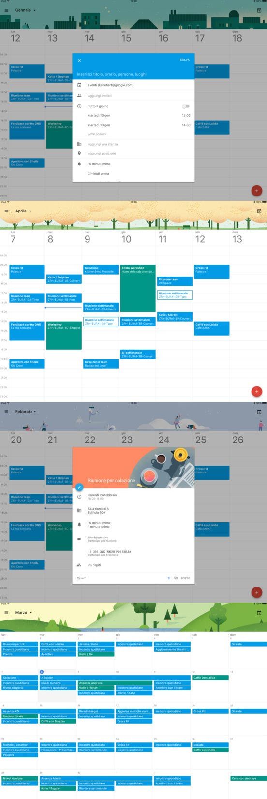 "Sia che si tratti di passare da una riunione all’altra o incontrare un cliente, Calendario lavora per voi… sempre e ovunque" scrive Google nl suo blog. "Ecco perché oggi, stiamo portando Google Calendar sull’iPad".