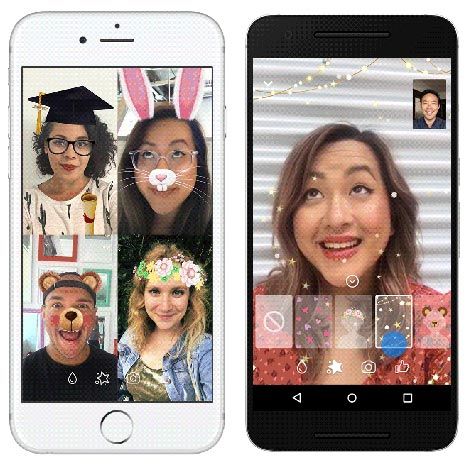 Le maschere in Messenger sono state disponibili per un po’, ma ne sono state aggiunte di nuove. Alcune maschere hanno effetti nascosti, come ad esempio reagiscono ai movimenti facciali. (Suggerimento: provate ad aprire la bocca mentre usate la maschera di coniglio …). Facebook ha inoltre aggiunto effetti animati, come cuori cadenti e stelle scintillanti, per rendere piu’ espressivo il video. A differenza delle reazioni, le maschere e gli effetti rimangono sullo schermo per tutta la durata della video chat (o fino a quando non si decide di togliere la maschera o passare ad un’altra).