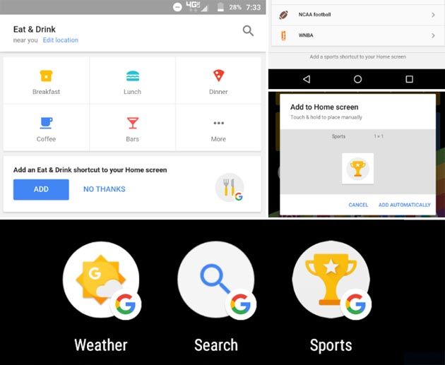 L'app Google su Android Oreo permette di inserire nella Home Screen delle scorciatoie per accedere direttamente a determinate sezioni dell'app.