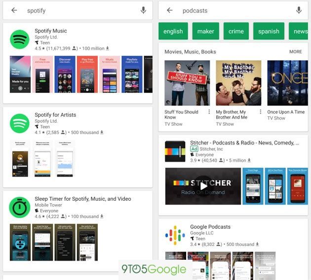 In precedenza, i risultati venivano mostrati in schede contenenti l’icona, il titolo, il nome dello sviluppatore, l’eventuale costo e il rating dell’app: dopo la modifica all’interno di ogni scheda vengono mostrate le stesse informazioni con l’aggiunta di screenshot che mostrano l’anteprima dell’app.