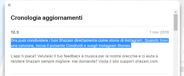 Changelog Shazam per iOS versione 12.3