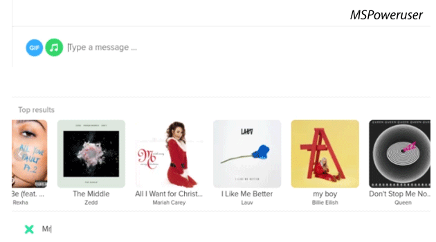 Stando agli screenshot condivisi da un utente che sta partecipando al test della funzione, premendo la nuova icona con una nota musicale e di colore verde aggiunta al fianco dell’icona blu che si usa per inserire GIF in una chat di Tinder è possibile ricercare brani musicali dal catalogo di Spotify da condividere nella conversazione, una clip musicale della durata di massimo 30 secondi (quindi non si puo’ condividere un brano intero).