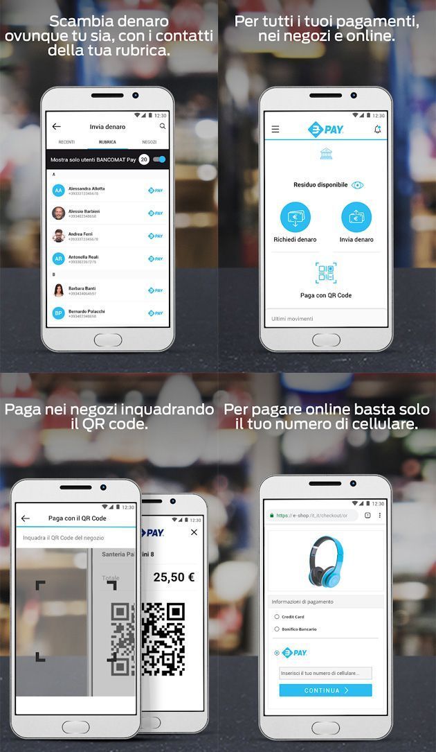 L’app Bancomat Pay è disponibile dal 31 gennaio 2019 sul Play Store per dispositivi Android e da febbraio lo sarà per dispositivi iOS su App Store di Apple. Consente di trasferire denaro, acquistare beni e servizi sia online sia presso i punti vendita degli esercenti convenzionati.