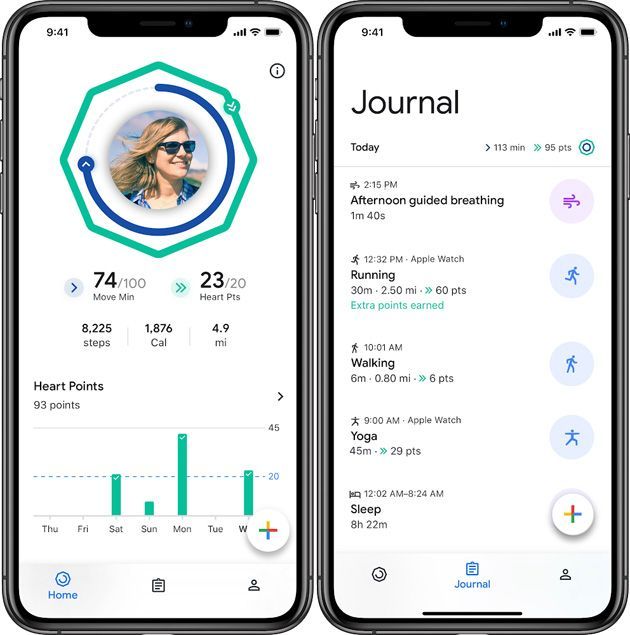 Le app che si collegano a Apple Health, come Sleep Cycle, Nike Run Club e Headspace, si sincronizzano con Google Fit per fornire una visione olistica dello stato della propria salute e mostrare i Punti cuore e i minuti di movimento che si guadagnano attraverso altre attività. E se si possiede un orologio Apple Watch o uno smartwatch con sistema operativo WearOS di Google, Google Fit tiene traccia delle sessioni di allenamento. Tutti i dati delle attività svolte sono raccolti nel diario in-app, dove si possono anche trovare suggerimenti personalizzati e un piano di allenamento fattibile, ad esempio modifiche agli obiettivi consigliate in base alla propria attività.