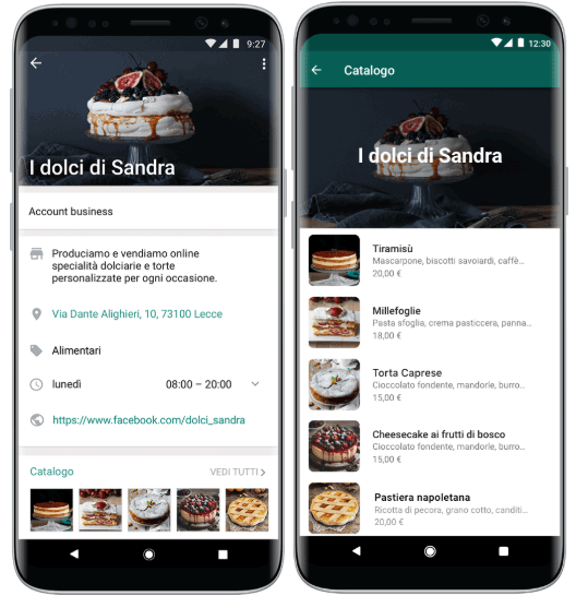 Whatsapp Business è l’app che chi ha un profilo aziendale di Whatapp deve usare per creare il catalogo di suoi prodotti e servizi che vuole promuovere mentre gli utenti hanno solo bisogno di accedere, attraverso l’app Whatsapp normale, al profilo dell’azienda per vedere il catalogo. Un esempio di catalogo si puo’ vedere nelle immagini qui sopra.