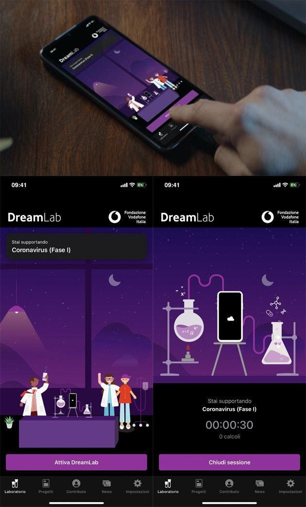 DreamLab è un’app gratuita che esiste da alcuni anni e permette di supportare la ricerca sul cancro mentre il telefono è in carica, ad esempio mentre si dorme. La potenza di calcolo degli smartphone – normalmente impiegata per posta elettronica, app, streaming di video o musica – è infatti una risorsa inutilizzata durante la notte e l’app DreamLab consente di metterla a servizio della ricerca. Al progetto sulla ricerca sul cancro è stato recentemente introdotto nell’app il progetto "Coronavirus" che utilizza la stessa tecnologia per contribuire alla lotta contro il Covid-19.