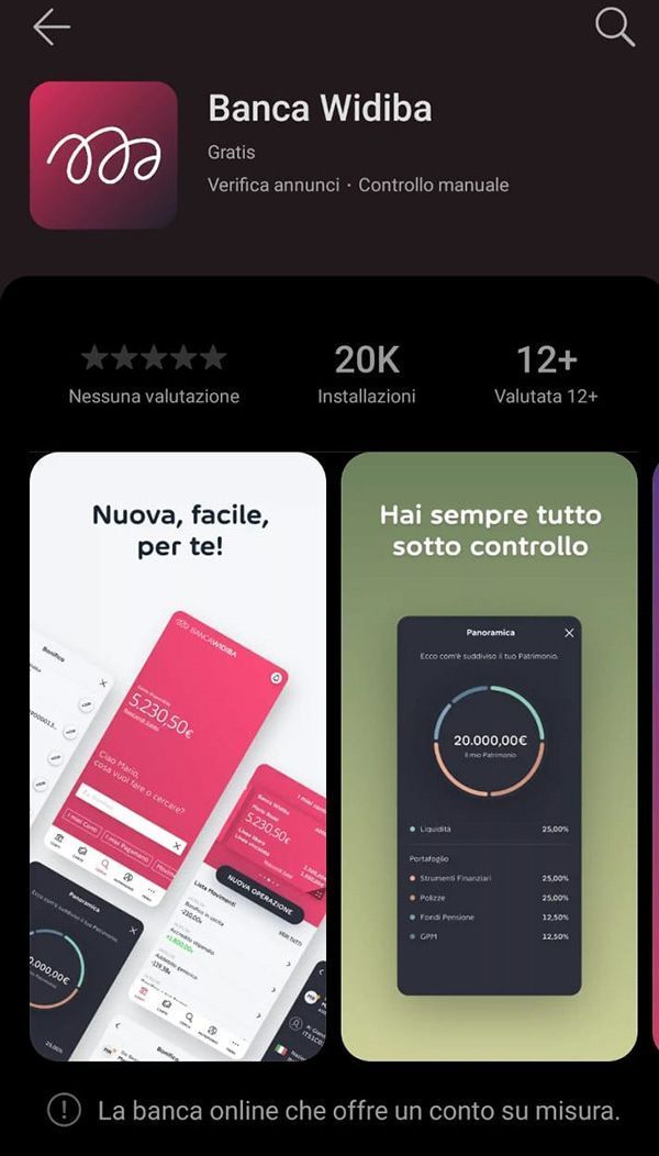 – Banca Widiba: l’app ufficiale per i clienti di Banca Widiba, con raccolte in un’unica pagina le operazioni principali e le informazioni utili e l’accesso rapido alle coordinate bancarie del proprio conto da condividere velocemente, anche su Whatsapp o via sms. E’ inoltre possibile fare operazioni e pagamenti in un modo nuovo, come chattando. E basta inquadrare il QR Code dei bollettini per la compilazione automatica.