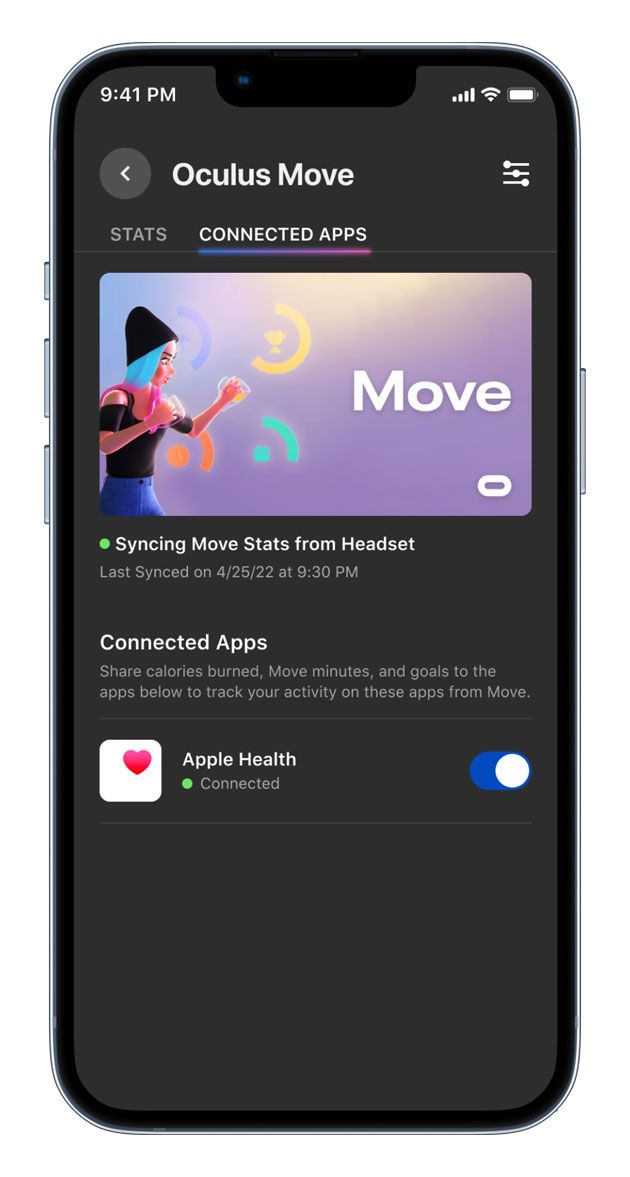 I possessori di un dispositivo iOS possono sincronizzare i dati di Oculus Move con l'app Salute di Apple per monitorare in automatico gli allenamenti VR anche sul proprio iPhone, iPad o Apple Watch.