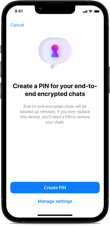 Messenger – creazione PIN per backup chat crittografati