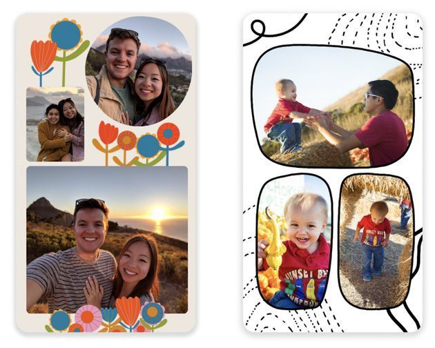 Infine, Google Foto si aggiornerà per offrire un nuovo editor per creare collage di foto (prima su Android e più avanti su iOS) che permetterà di creare facilmente collage di foto condivisibili, come quelli da esempio visibili qui sotto. Tramite questo strumento, sarà sufficiente selezionare le foto da inserire nel collage, selezionare il design del collage tra quelli disponibili e organizzare le foto all’interno del layout selezionato tramite semplici controlli di trascinamento dei contenuti selezionati. Sarà anche possibile regolare la luminosità o il contrasto, applicare filtri e altro ancora per migliorare le foto. Gli utenti abbonati a Google One e i proprietari di dispositivi Pixel potranno anche utilizzare funzionalità di modifica aggiuntive come Portrait Light o HDR e accedere ad oltre 30 layout aggiuntivi.