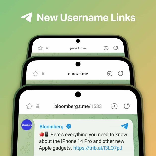 Gli utenti di Telegram sanno che ciascun profilo pubblico, gruppo o canale dispone di un univoco link composto da "t.me/username" che può essere facilmente condiviso. Telegram ha ora aggiornato lo schema di questo link in "username.t.me". L’azienda ha spiegato di aver effettuato questa modifica per chi magari trova delle difficoltà nel trovare il tasto ‘/’ (su molte tastiere, effettivamente, è accessibile scorrendo più pagine di pulsanti).