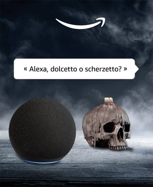 "Alexa, quanto manca ad Halloween?" è la domanda che gli utenti di Alexa possono fare all’assistente digitale di Amazon per ascoltare il countdown al giorno più spaventoso dell’anno. E’ possibile anche chiedere "Alexa, dolcetto o scherzetto?" per scoprire i contenuti a tema disponibili o riprodurre suoni spaventosi con cui terrorizzare gli ospiti, oppure "Alexa, racconta una barzelletta su Halloween" per ascoltare battute su vampiri, lupi mannari, mummie, fantasmi e altri personaggi mostruosi – si potrebbe anche scoprire che cosa ordinerebbe uno scheletro al ristorante. E’ possibile invece chiedere "Alexa, racconta una storia di paura" per ascoltare un racconto di paura, con tanto di suoni e colonne sonore a ricreare un ambiente da film horror. Dicendo "Alexa, giochiamo all’avventura di Halloween" è possibile avviare in un gioco interattivo in cui si viene chiamati a prendere decisioni per scappare dai mostri e portare Alexa in salvo. Chiedendo "Alexa, che tipo di mostro sono?" è invece possibile rispondere ad alcune domande per scoprire a quale terrificante creatura si somiglia.