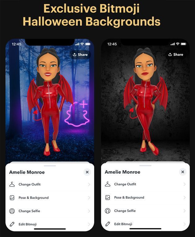 Per aiutare gli utenti di Snapchat di tutto il mondo a prepararsi a festeggiare il momento più spaventoso dell’anno, Snap lancia una serie di Lenti a tema e nuove funzionalità Bitmoji. Inoltre, dal 31 ottobre e per un periodo di tempo limitato, la Snap Map sarà decorata a tema, in modo spaventoso.