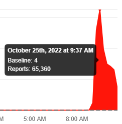 Secondo il sito DownDetector, che offre una panoramica in tempo reale dei problemi e delle interruzioni di tutti i tipi di servizi grazie alle segnalazioni degli utenti, i problemi per Whatsapp si sono verificati tra le 9 e le 11 del mattino del 25 ottobre 2022, con l’apice del blocco del servizio alle ore 9:37 con oltre 65.000 segnalazioni prima di calare, segnale che il servizio stava già tornando disponibile. Possiamo presumere che questo down abbia colpito maggiormente gli utenti in Europa, dal momento che negli Stati Uniti la maggior parte degli utenti stava dormendo – per via del fuso orario, quando in Italia erano le 9 del mattino, negli Stati Uniti erano le 3 del mattino.