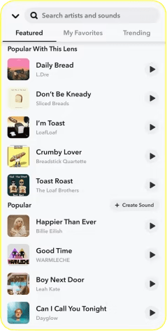 Snapchat – esempio di Sounds Recommendations for Lenses