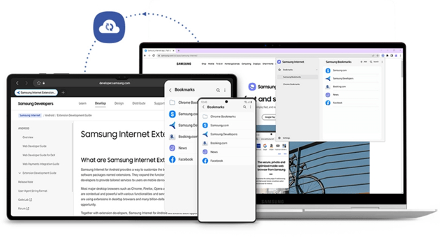 La navigazione Samsung Internet è stata semplificata nella versione 18.0, che ha introdotto lo strumento di estrazione del testo dalle immagini nelle pagine web e ha spostato la barra degli strumenti nella parte inferiore dello schermo per la prima volta nella serie di pieghevoli Galaxy Z Fold. Samsung Internet 19.0 prosegue in questa direzione per rendere più intuitiva e semplice la navigazione sul web. In particolare, i componenti aggiuntivi ora funzionano anche in modalità Segreta, con possibilità di scegliere quali componenti aggiuntivi attivare/disattivare nella modalità Segreta dal menu ‘Componenti aggiuntivi’. E’ inoltre ora possibile sincronizzare i segnalibri tra il browser Chrome del PC e il browser mobile Samsung Internet utilizzando l’estensione ‘Chrome’ di Samsung Internet scaricabile dal Chrome Web Store, in modo da poter accedere facilmente ai propri siti wb preferiti sul proprio PC dai segnalibri salvati sul proprio smartphone e viceversa.