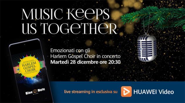 Huawei ha comunicato che Martedì 28 dicembre 2021 alle ore 20.30 grazie ad una partnership con Blue Note Milano gli utenti della sua app Huawei Video potranno vedere in streaming, gratuitamente, l’evento musicale "Music Keeps us Together", un concerto gospel che si terrà dal vivo nel jazz club di via Borsieri. Sarà trasmesso in diretta streaming non solo in Italia ma in 62 Paesi nel mondo.