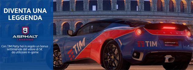 I clienti TIM con linea mobile iscritti al programma a premi TIM Party possono richiedere la promozione ‘DIVENTA UNA LEGGENDA’ a loro riservata e dedicata al gioco mobile Asphalt 9 Legends, valida fino al 31 dicembre 2018, per avere ogni settimana un bonus del valore di 5 euro che si puo’ utilizzare all’interno del gioco Asphalt 9 Legends per iOS o Android.