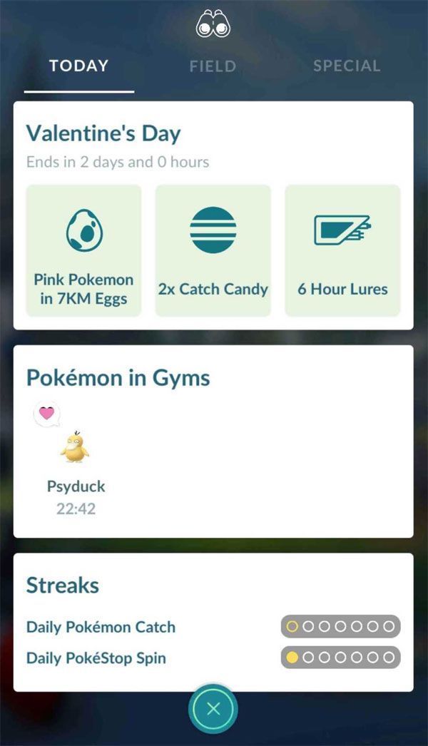 In seguito all’aggiornamento dell’app, nella stessa sezione delle schede Ricerca sul campo e Ricerca speciale gli allenatori potranno visualizzare gli eventi in corso, i bonus, le serie quotidiane e altro ancora, nella nuova vista Oggi.