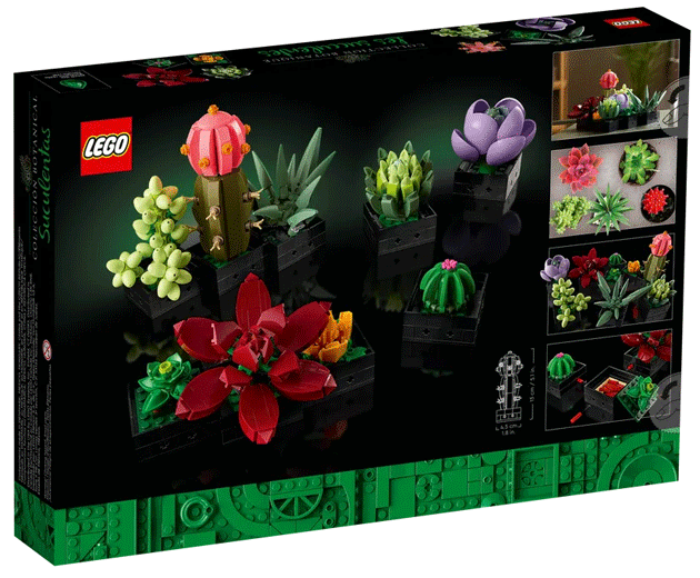 Il set LEGO Piante Grasse permette di costruire ben nove piante grasse in una sola volta: le piantine e i cactus possono essere costruiti separati e collegati tra loro in maniera creativa, o distanziati a seconda della stagione o dell’arredamento. Questo set include tre manuali d’istruzione, così più persone possono divertirsi a costruire nello stesso momento una o più piante. "Si dice che avere piante grasse in una stanza aiuti a concentrarsi… speriamo che questo set doni la stessa sensazione!", dice Andreson Ward Grubb, Senior Designer del Gruppo LEGO. "Volevamo creare un modellino che fosse capace di offrire un’esperienza rilassante per aiutare gli adulti a staccare dalla loro vita frenetica e, soprattutto, a concentrarsi su qualcosa che li facesse divertire."