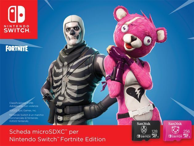 La scheda microSDXC SanDisk per Nintendo Switch dedicata a Fortnite si può trovare in commercio nelle capacità da 128GB e 256GB con prezzi da 40,99 euro presso un gruppo selezionato di rivenditori, presso gli e-tailer e sullo store online di Western Digital.