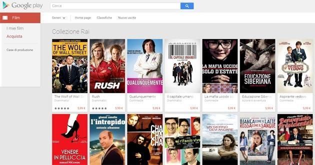 Oltre al comunicato stampa diffuso dalla Rai per annunciare la partnership, nella homepage di Google Play Film è già stata aperta la sezione ‘Collezione Film Rai Cinema‘ dove è possibile consulate tutto il catalogo che comprende titoli come The Wolf of Wall Street, Rush, Qualunquemente, Il capitale umano, La mafia uccide solo d’estate. Già dal 25 marzo è possibile accedere attraverso lo store di Google a 180 pellicole e altre centinaia saranno presto disponibili.