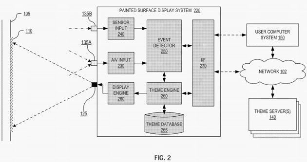 In un brevetto assegnato a Google, l'azienda delinea un sistema di proiezione che può visualizzare le immagini su un muro dipinto con vernice foto-reattiva. L'idea di Google sarebbe sostanzialmente quella di trasformare qualsiasi parete in una casa in uno schermo.