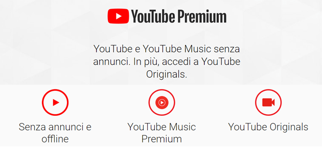 Per spiegare il servizio nel modo piu’ semplice possibile, YouTube Premium è un abbonamento a pagamento che permette di ottenere un’esperienza senza interruzioni su YouTube e YouTube Music. I vantaggi dell’abbonamento includono: Video senza interruzioni pubblicitarie; Salvataggio offline dei video e brani sul dispositivo mobile per riprodurli senza una connessione; Riproduzione in background di video o musica senza interruzioni quando si utilizzano altre app o quando lo schermo è disattivato; Modalità audio per ascoltare l’audio solo sull’app YouTube Music Premium; abbonamento a Google Play Musica incluso senza costi aggiuntivi. I vantaggi di YouTube Premium non sono supportati sui video a pagamento di YouTube, come i canali a pagamento, i noleggi di video e gli acquisti pay-per-view.