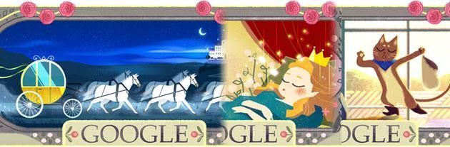 Il doodle per Charles Perrault. Niente animazioni come Google ci abituati all’inizio dell’anno nel doodle per lo scrittore francese a lui dedicato per tutta la giornata del 12 gennaio 2016 nel motore di ricerca. Il doodle è infatti una immagine statica, piuttosto grande, che cambia ad ogni caricamento della pagina, con ciascuna che è dedicata ad una specifica fiaba tra quelle raccontate da Perrault e con la scritta ‘Google’ che fa parte della cornice del disegno. Tre sono le immagini che si possono trovare: in una vediamo ad esempio una scarpetta e la carrozza che prima era una zucca per Cenerentola, in un’altra vediamo un gatto con un paio di stivali e un sacchetto in mano (Il gatto con gli stivali), mentre in una terza vediamo un principe che cerca di svegliare una giovane ragazza su un letto (La bella addormentata). A seguire potete vedere tutte e tre le immagini.
