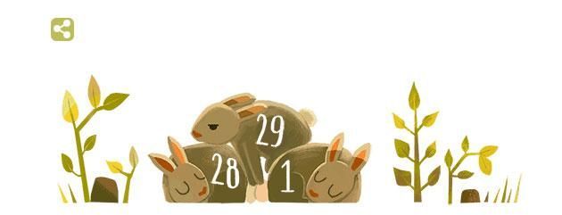 Il doodle che Google dedica nella giornata di Lunedì 29 marzo 2016 all’anno bisestile è una semplice immagine animata, nella quale vengono rappresentati all’inizio due conigli che riposano, uno con il numero 28 (di febbraio) al fianco di un coniglio col numero 1 (di marzo) quando ad un certo punto vediamo comparire un terzo coniglio, questo con il numero 29 che si fa spazio tra gli altri due conigli.