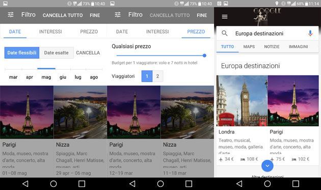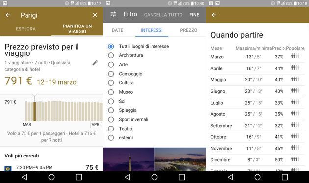 Grazie a Ricerca voli e Ricerca di hotel di Google, Destinations combina le informazioni su numerosi luoghi in tutto il mondo, come i voli disponibili e i prezzi degli alberghi. Invece di passare da un link a un altro, o da una scheda a un’altra per avere tutte le informazioni che si cercano, ora è possibile scorrere su un’unica pagina le informazioni piu’ utili.